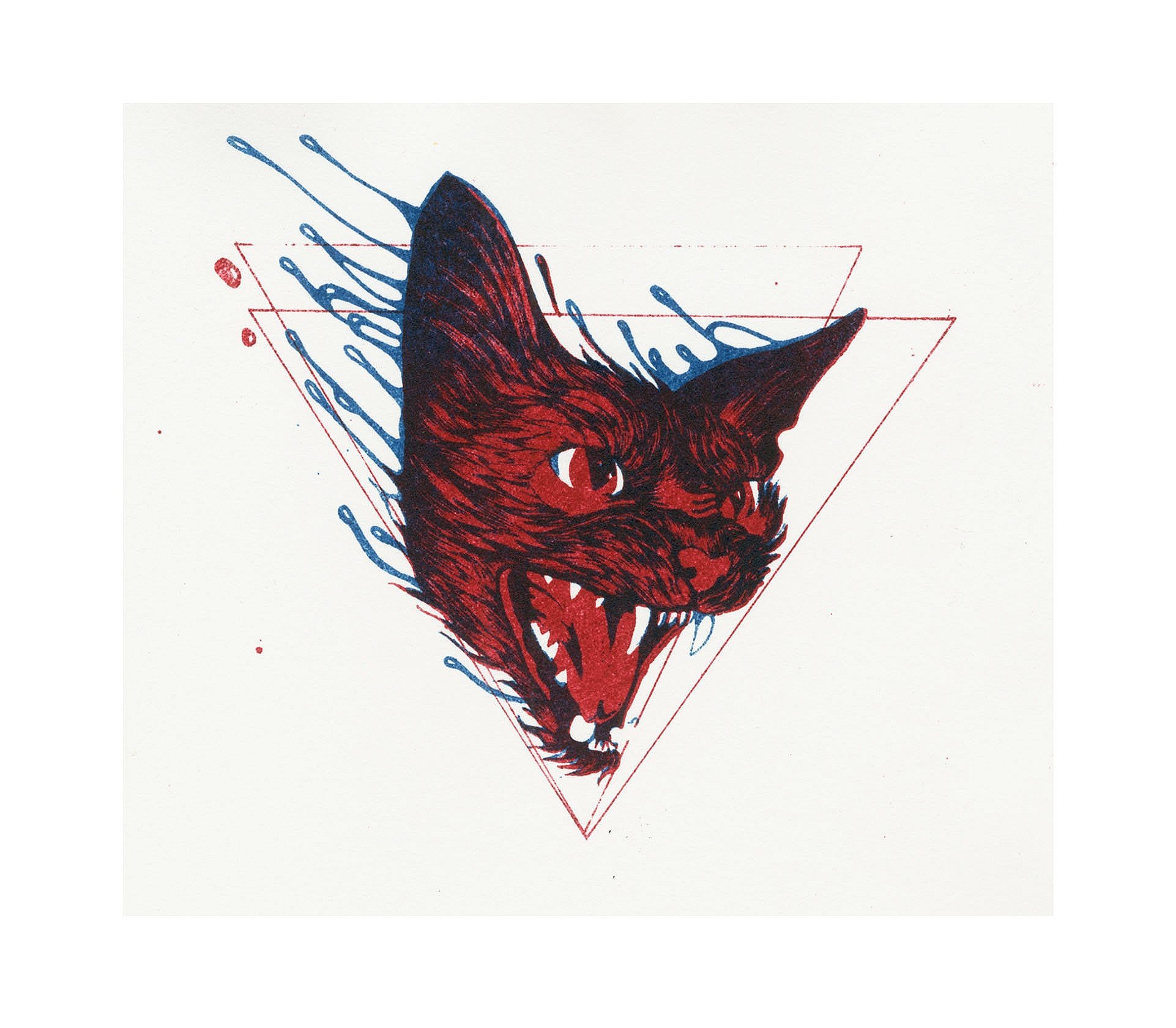 Wicked Cat, Pronto Plate Lithography, 6 1/2”x7”, 2021